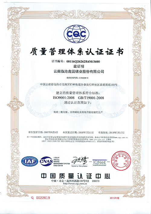 質(zhì)量管理體系證書